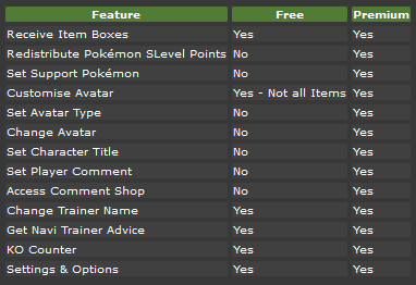 Here’s a handy chart showing the difference between the free and premium service for the web portal (courtesy of Serebii):