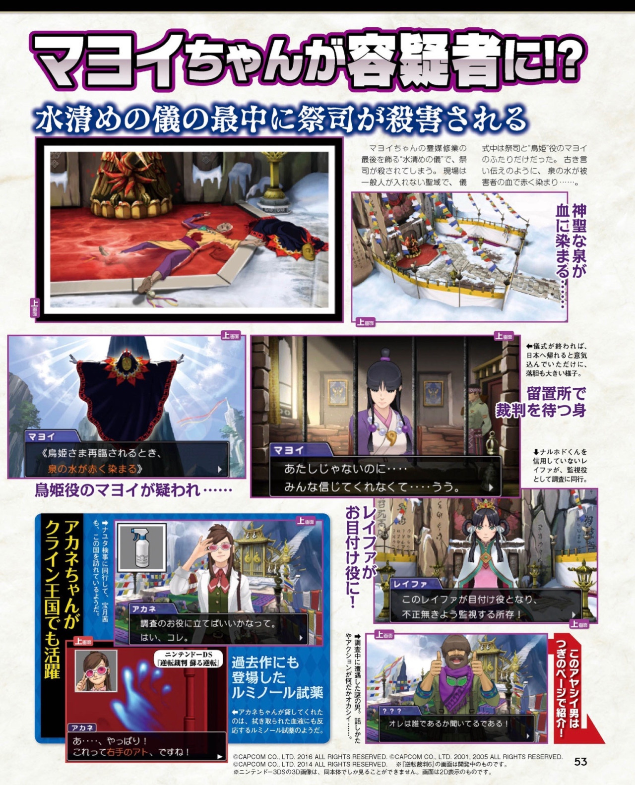 As announced yesterday, Phoenix Wright: Ace Attorney – Spirit of Justice is showcased in Famitsu magazine this week, with some details about Case 3. And as usual, thanks to our friends at Court Records, we have some translations of the details found in the magazine!