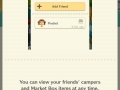 Now that the “Arrange” part is dealt with, it’s time to invite people to your campsite! You press the “Contacts” tab at the bottom of the screen, and you have a list of animals you can invite to your campsite (you can sort them by type, such as cats, dogs, etc.). For now, the only choice available to us was Goldie, that we helped earlier. You tap her icon, and you’re redirected to her profile.