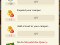And it’s at this point that the game opens up. You’re immediately greeted by the Log-in Bonus screen (more details about that soon). After that, you get a list of Timed Goals and Stretch Goals: “missions” you can complete to get various items, such as wood for example.