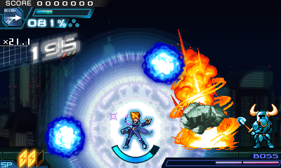 Do you like that sexy Shovel Knight spirte? If yes, that’s Masaya Suzuki (Mega Man Zero, Breath of Fire) that you have to thank for it! Shovel Knight will be available as a boss for players scanning the Shovel Knight amiibo in Azure Striker Gunvolt 2 (physical or digital). You can chose to fight him as both Gunvolt and Copen.