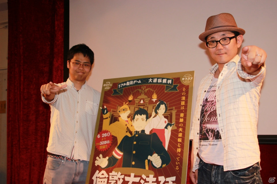 But that’s not all: here’s various pictures of the opening event for the real-life escape game, which started yesterday in Tokyo. As mentionned yesterday, Shu Takumi (Director of Dai Gyakuten Saiban: Naruhodou Ryuunosuke no Bouken) was in attendance. Also, we get to see some of the goodies that were on sale at the event.