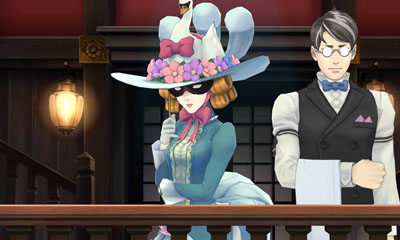 Here’s the new screenshots for that first case of Dai Gkyakuten Saiban: Naruhodou Ryuunosuke no Bouken, showing Taketsuchi Auchi, Hosonaga Satoshi (a waiter, who’s also a witness) and a rather mysterious lady:
