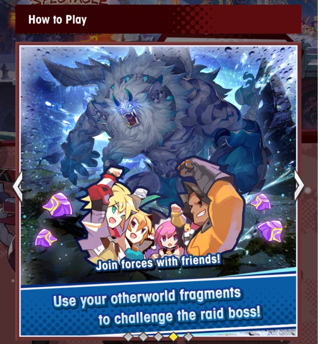 By beating bosses, you earn otherworld fragments: you can then use those to challenge the mighty Raid Boss with your friends or complete strangers during a Raid Battle. During those, all 4 players bring 4 characters each, for a total of 16 characters in battle. There’s 3 difficulty levels: Beginner, Standard, and Expert. If you’re hosting a room for a raid battle, or join someone’s room, you will need otherworld fragments and getherwings. If you join someone’s room, you also need to be able to challenge the same difficulty as the host.
