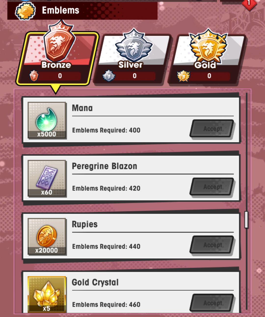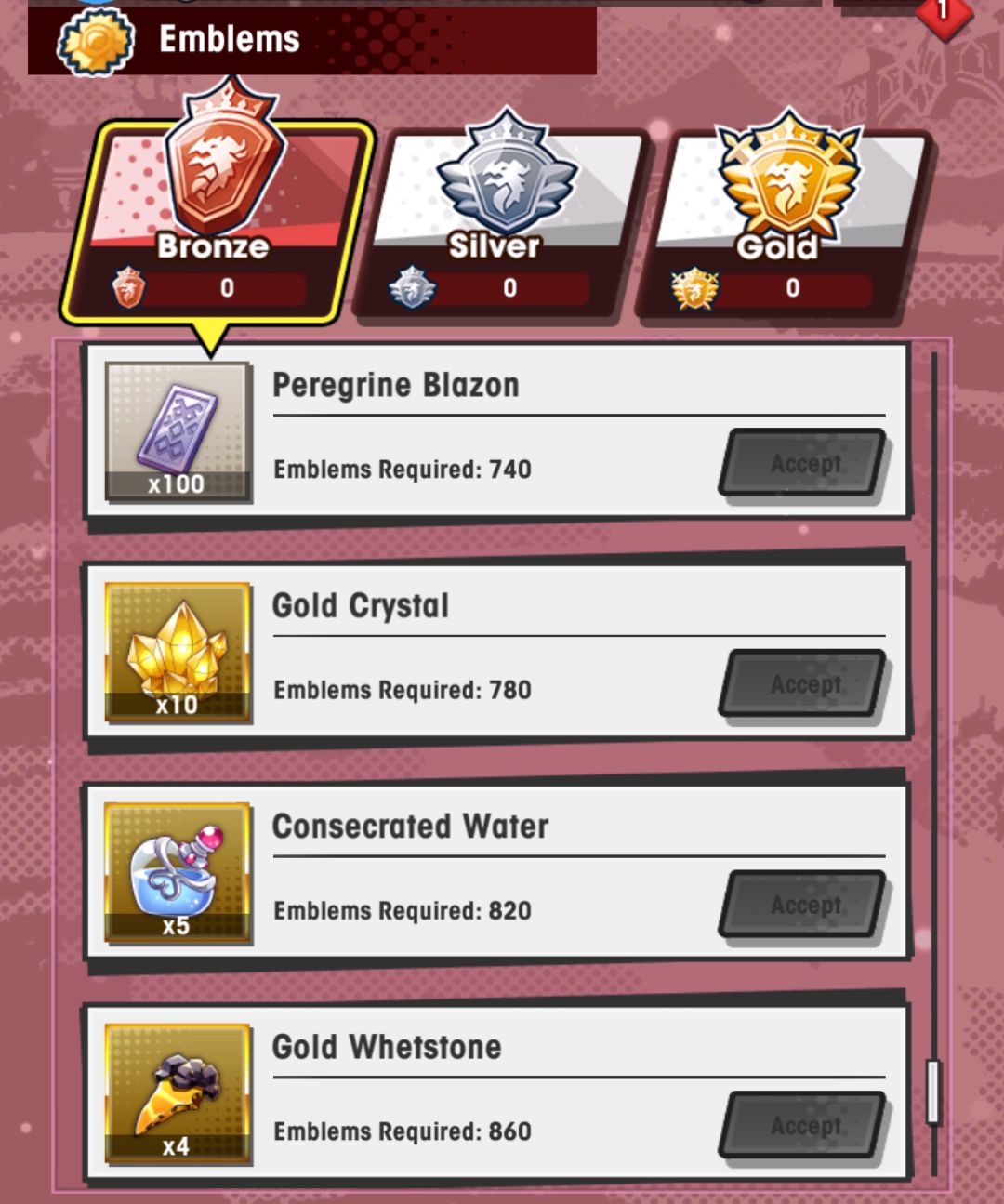 Here’s the list of Emblems rewards (Bronze, Silver, and Gold):