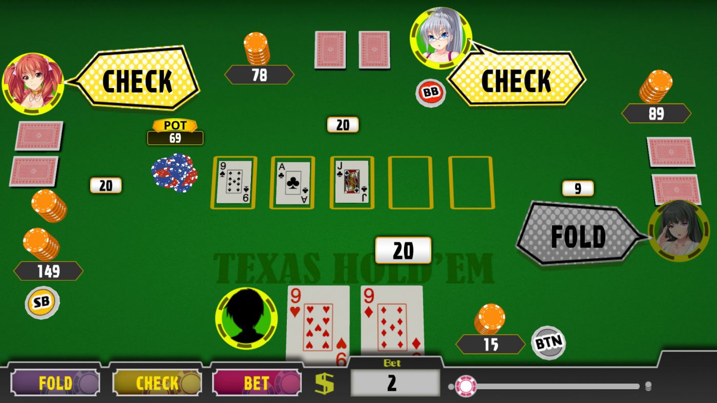 Classic Texas Hold’em gets a naughty twist at the Pretty Girls casino, where you’re invited to play at tables against 16 lovely challengers, all dolled up in cute summer outfits! Each female opponent has her own look and unique style of play, along with Japanese voiceovers to let you feel their excitement in the intense poker battles. Start out against 4 of these gorgeous players and unlock more as you prove your skills worthy of new challengers.