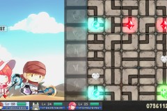 Fairy Knights’ battle system is based on the pipe puzzle. Players move stone panels engraved with paths to make an energy route. The energy will destroy the panels in its way, making the character take various actions on enemies. More stone panels you break, stronger the attack gets. But be careful not to make a wrong move and finish the puzzle early, especially when fighting a powerful enemy. Don’t be afraid of fights, though, since leveling up unlocks many new weapons and spells.