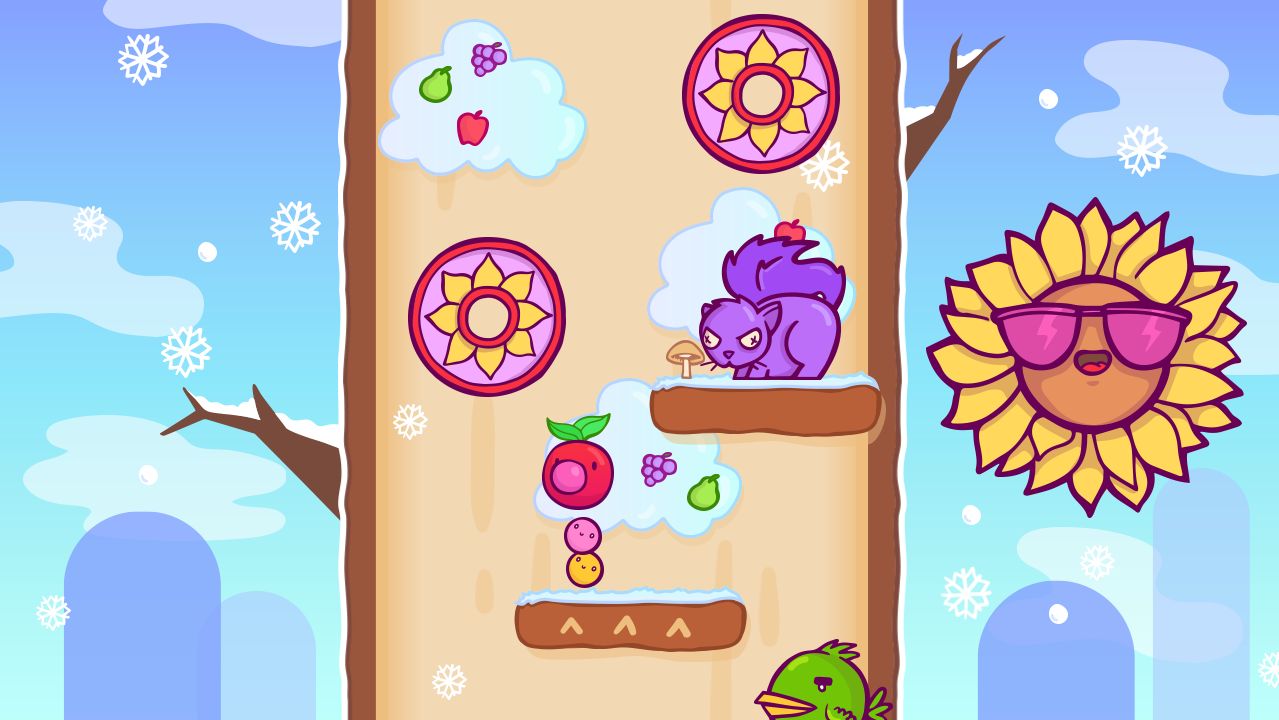 As well as a fruity trip through all those hand crafted levels, we’re also bringing you a multiplayer mode for one to four people where players will race each other to bounce the fastest, climb the highest and scrump the most fruit.