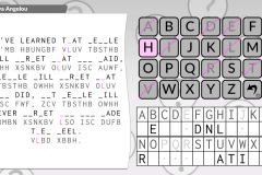 [ngg src=”galleries” ids=”24003″ display=”basic_thumbnail”]In a cryptogram puzzle, every letter of the alphabet has been switched for a different letter to present a scrambled message. Using logic and reasoning, players can decipher the encoded text to reveal a funny or inspirational quote. A good starting point is to look for apostrophes in the text, as they are frequently followed by a letter ’S’. Single-letter words are ‘A’ or ‘I’, and double letters in words often provide useful information.