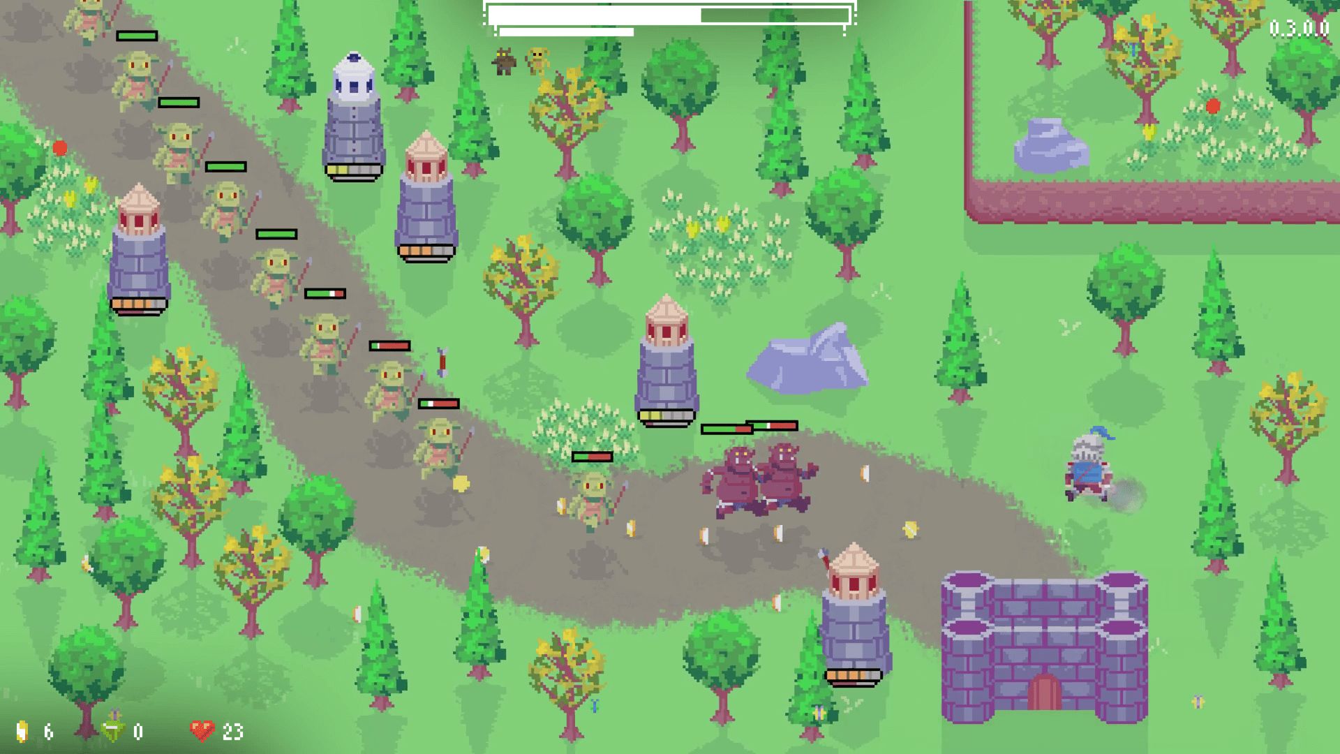 Slash goblins, ogres, wizards, and more with your trusty sword, roll through waves of enemies, and build towers as fast as you can. Reap the rewards of combat by collecting coins from fallen foes, but tread carefully so as not to get walloped on the field of action!