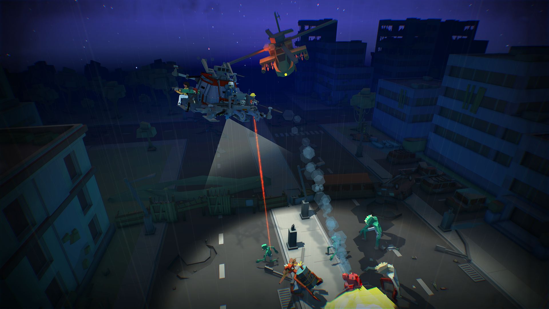 But, saving the day can’t be done alone. Hire shooters to put those weapons to use, each with their own unique strengths and weaknesses, as you decimate the zombie population, rescue survivors, protect aid-providing convoys, and destroy high-value enemy targets. Use your chopper’s winch hook to haul in and collect supplies, place base defenses, haul the corpses of zombies back to your base for analysis and even use objects in the environment as weapons like battering rams as you deftly maneuver your helicopter through the decimated cityscapes overrun by the zombie hordes.
