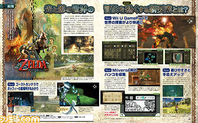 The Legend of Zelda: Twilight Princess HD is one of the games featured in Famitsu magazine, this week. It will get a 4-page article, which seems to focus on the GamePad features of the game (such as the inventory, the map, Miiverse, and more). Based on the previous page below, it doesn’t look like there is anything really new!