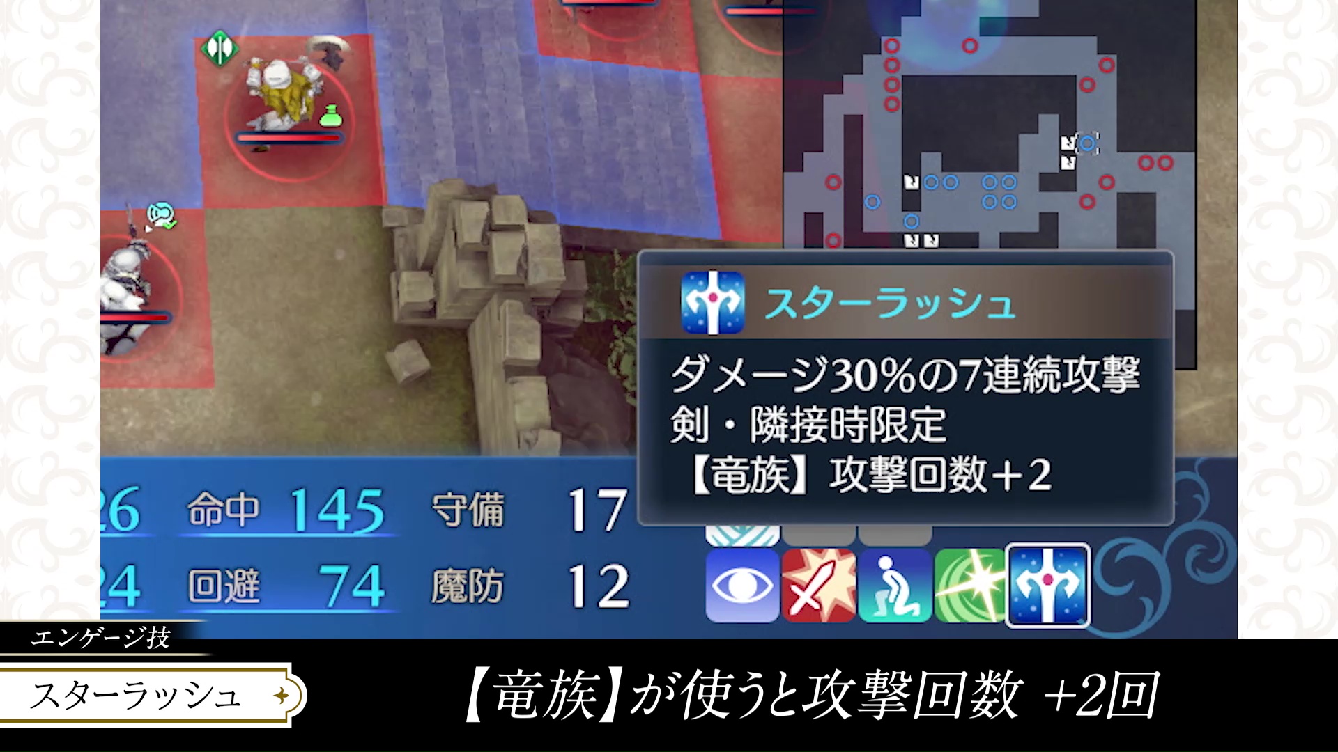 - Engage Attack: Lodestar Rush. Unleashes a flurry of speedy attacks that inflict lots of damage. When used by a Dragon unit, the number of attacks is increased by 2, which is why Marth is a great Emblem for Alear!