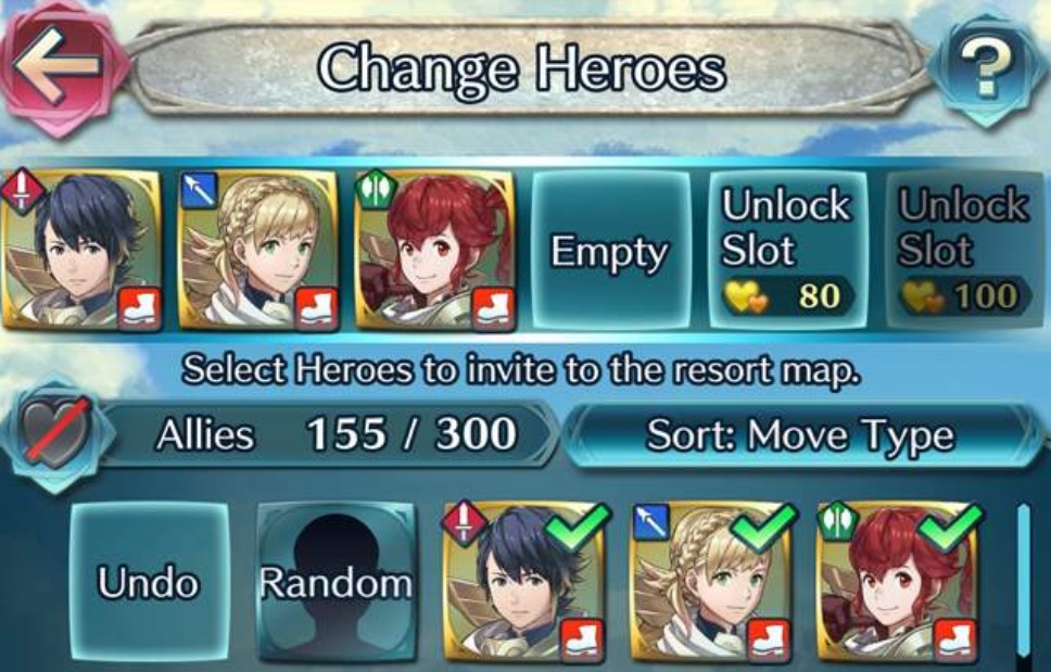 Introduced in Ver. 3.4.0 of Fire Emblem Heroes, Aether Resort is a brand new mode that allows you to invite Heroes from your collection (or your friends’), and interact with them. You can find it by tapping Battle > Aether Keeps > Aether Resort.