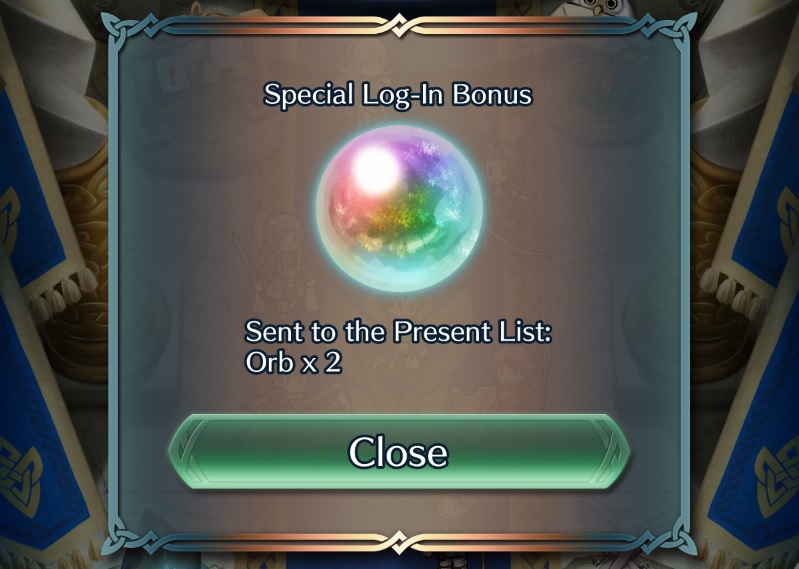 - [Log-in Bonus] As part of the Fire Emblem Echoes: Shadows of Valentia Release Celebration, all players get 5 Orbs as a special, one-time log-in bonus (available until June 2nd)