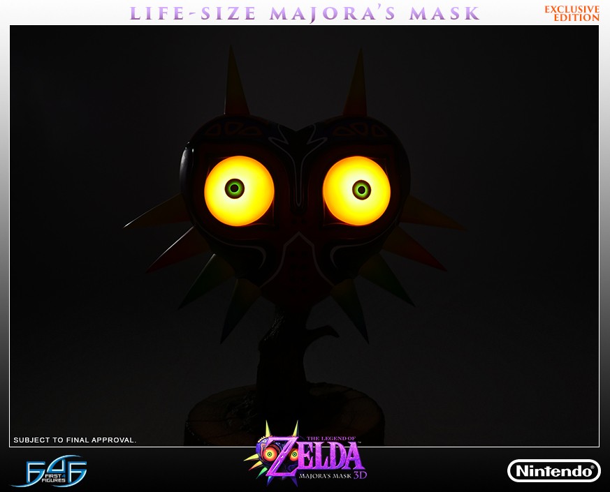 [This is the exclusive edition of The Legend of Zelda: Majora’s Mask where LED’s are include allowing the eyes glow brightly, truly bringing the entire piece to life.]