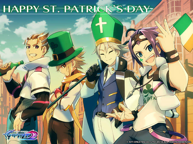 Also, Inti Creates shared the latest wallpaper for Azure Striker Gunvolt 2 today, and it’s for St Patrick’s Day. As usual, you can get it from the official website!