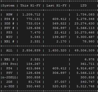 Japan: Famitsu sales for Half-1 2017 (FY)