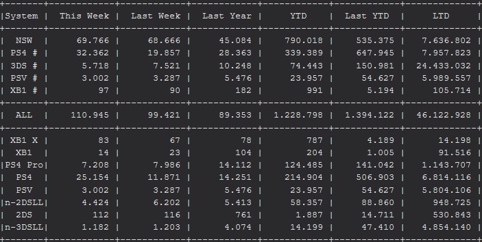 As of this week, the console has sold nearly 800 000 units in 2019 alone with 790 018 units sold. It looks like it will reach 1 million units YTD before the end of the month: it needs only 36 000 units/week to reach that, and even if sales were to drop starting next week, it would require a major drop for that milestone not to be reached. Even if the March line-up isn’t the best ever, there’s still too many games for sales to drop that sharply… not to mention the usual evergreen titles still have tons of selling power left!
