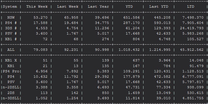 As for the Nintendo 3DS, its sales remain perfectly flat with 4 553 units sold (barely 201 units less than during the previous week).