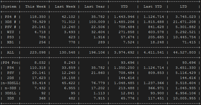 Miitopia comes out during Week 49 (on December 8th), and it will be interesting to see how that title is going to sell, especially as we’re right in the middle of the holiday period.