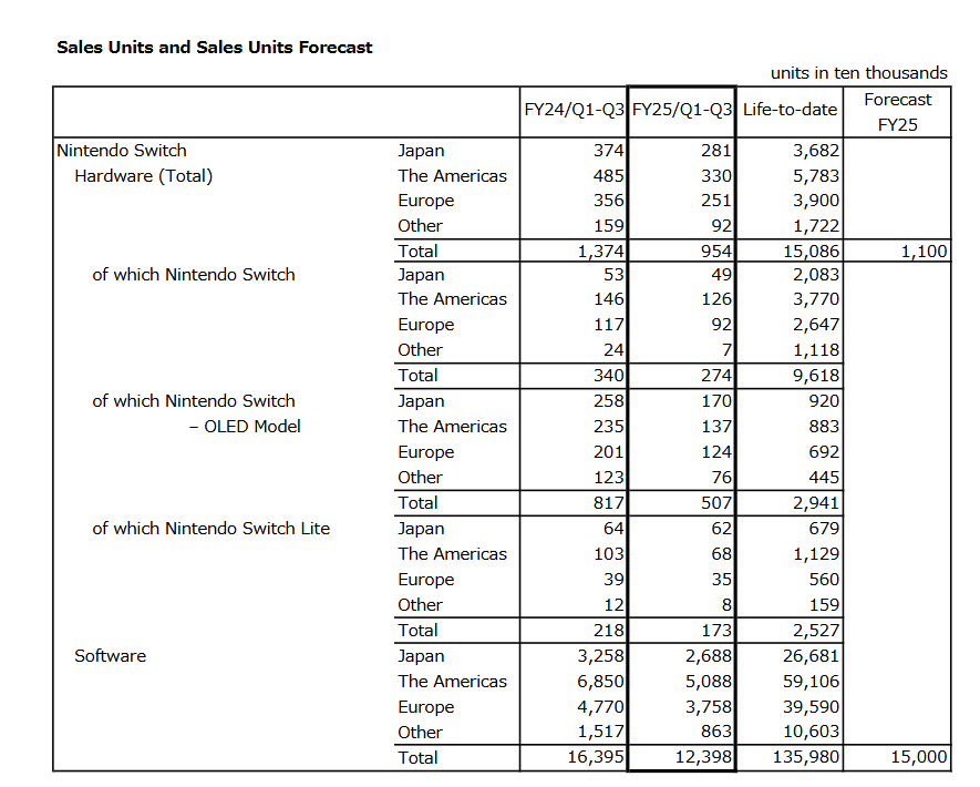- Both Hardware and Software sales during Q3 were below expectations, and so it’s no wonder that Nintendo revised the financial forecast for the full Fiscal Year downward a second time (after a first revision in November). That being said, the reevaluation of the assumed exchange rate is another reason the forecast was changed this time.