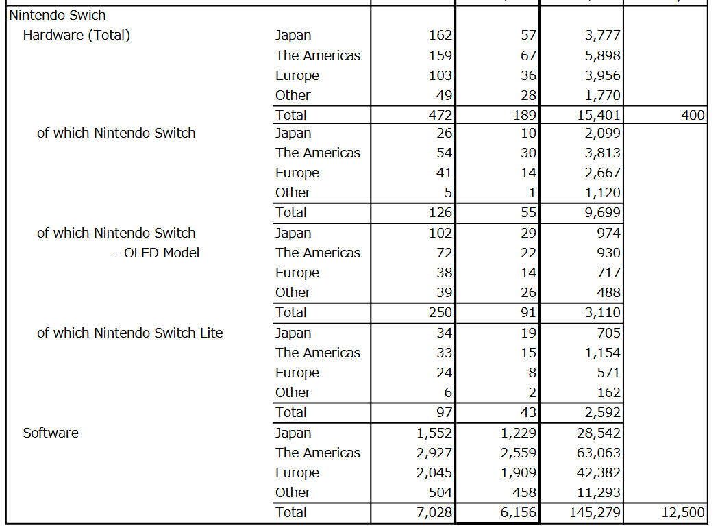- Dedicated Video Game Sales Unit: Hardware and Software sales for Nintendo consoles