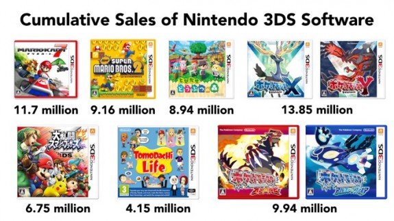 Those games are all what Nintendo calls “evergreen titles”, and they enjoyed great sales (especially in the West) during the past Fiscal Year. Those games, coupled with great new releases (such as Pokémon Omega Ruby / Alpha Sapphire, Tomodachi Life in the West, or Super Smash Bros. for Nintendo 3DS) are quite beneficial to the platform.