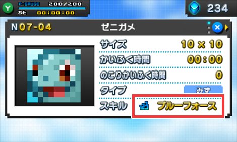 - Blue Force (Squirtle): changes the colour of hint squares (to blue) for those that can be filled in