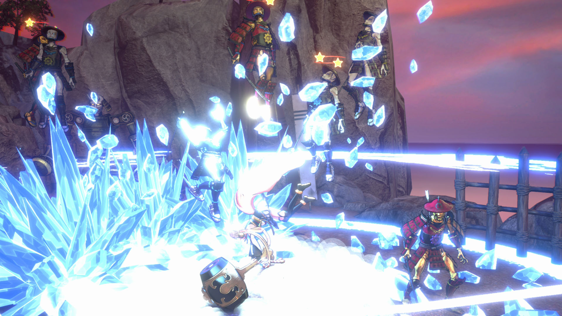 Experience a lightning-fast fusion of swordsmanship and ninjutsu action. Wield Tsumugi’s blade to slice, sever, and stab your way through hordes of corpses, and harness the ninjutsu techniques of her three ninja allies, whose arsenals includes kunai, bombs, onmyoji magic, and even a mechanized fist! Combine these fighting styles to thrash the undead legions en masse.