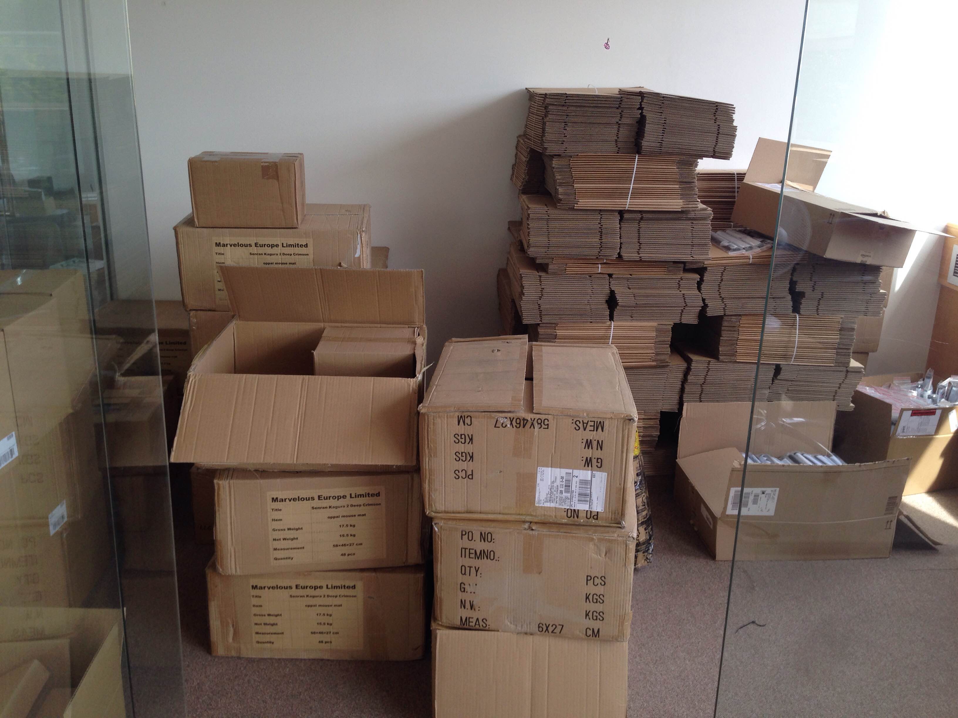 But that’s not all: they also posted some pictures of their storage room (filled to the brim with boxes… and that’s without the ones for the stickers!), a photo of Kenichiro Takaki signing personally the certificate for the Ultimate Shinoby Edition (at E3 2015), and a (literal) sea of Oppai mousepads.