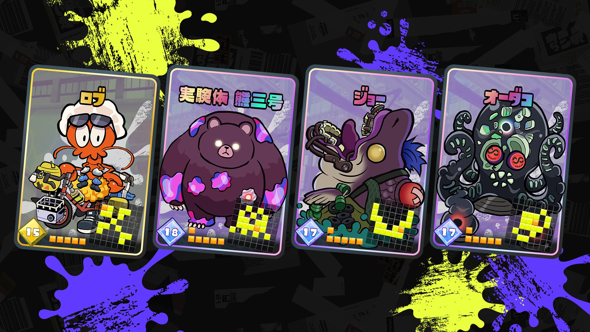 - adds 14 new Tableturf Battle cards, including Crusty Sean, The Ursine Anomaly – #03, Megalodontia, Overlorder, and the new weapons