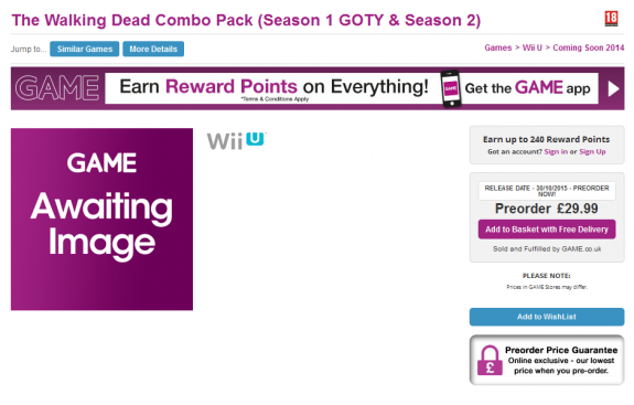Retailers are far from being reliable (though they are sometimes spot-on, as we saw recently with the Mighty No. 9 delay “leaked” by several US retailers), but the listing found yesterday by a reader of MyNintendoNews is too suspicious to ignore. According to the UK retailer GAME, The Walking Dead Combo Pack is coming soon to Wii U.