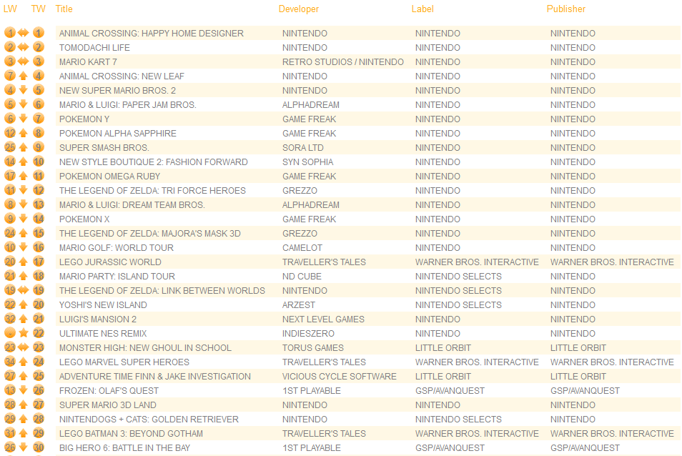Christmas may be just around the corner, it doesn’t look like it for Nintendo. For Week 50, there’s only three games on Nintendo platforms in the chart, including Just Dance 2016. The latest entry in the popular dance series is still selling the most on Wii, more than three years since the launch of the Wii U. This week, it makes its comeback in the Top 40 at #27, while the Wii U version is only #6 of the Wii U chart…