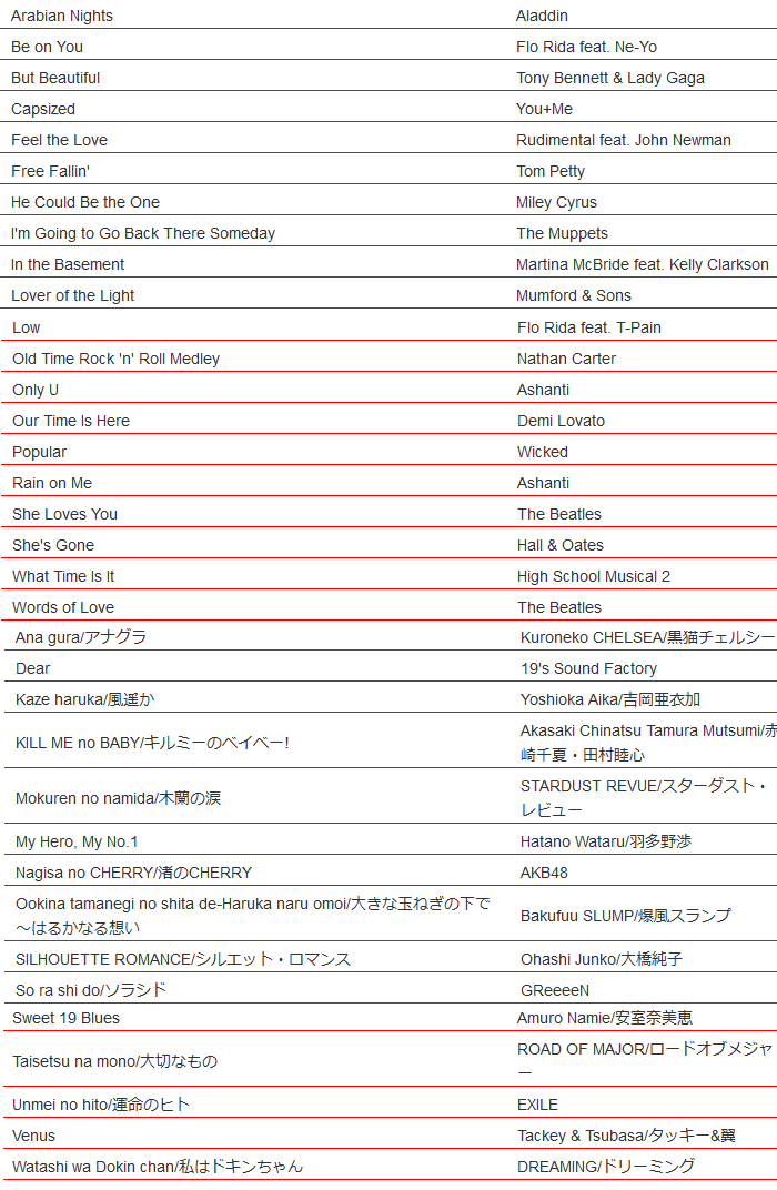 Wii Karaoke U: list of new EN/JP songs for July 16th, 2015 (Europe)