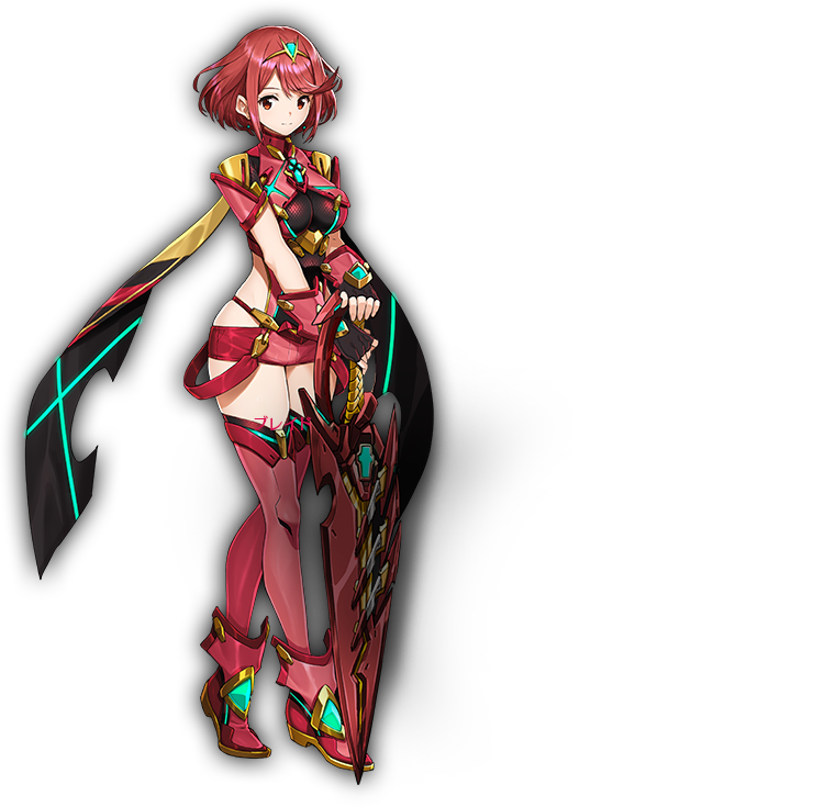 - Pyra (Blade, Fire attribute. Voiced by Shino Shimoji). A Legendary Blade, known as the Aegis. She’s desperaly looking for Elysium, and together with Rex (her Driver), she goes on a journey to find that fabled paradise;